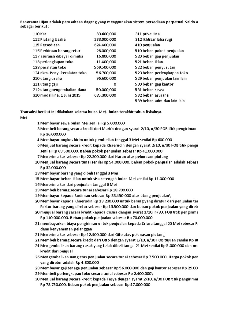 Panorama Hijau Adalah Perusahaan Dagang Yang Menggunakan Sistem Persediaan Perpetual : Soal Jurnal Myob Lks 2012 / Perusahaan dagang adalah perusahaan yang kegiatan utamanya membeli barang dagang dan menjualnya kembali tanpa mengubah bentuk barang tersebut dengan tujuan untuk memperoleh keuntungan atau laba.