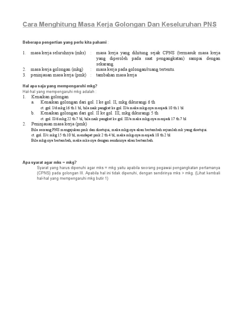 Mekanisme peninjauan masa kerja golongan ketentuan masa kerja golongan cpns persyaratan peninjauam masa kerja. Banyak mks = mkg jika seorang pegawai diangkat menjadi cpns pada golongan iii. Peninjauan masa kerja (pmk) : Masa kerja pns atau sering disebut masa kerja keseluruhan (mks). Masa kerja lampau (peninjauan masa kerja) 4.